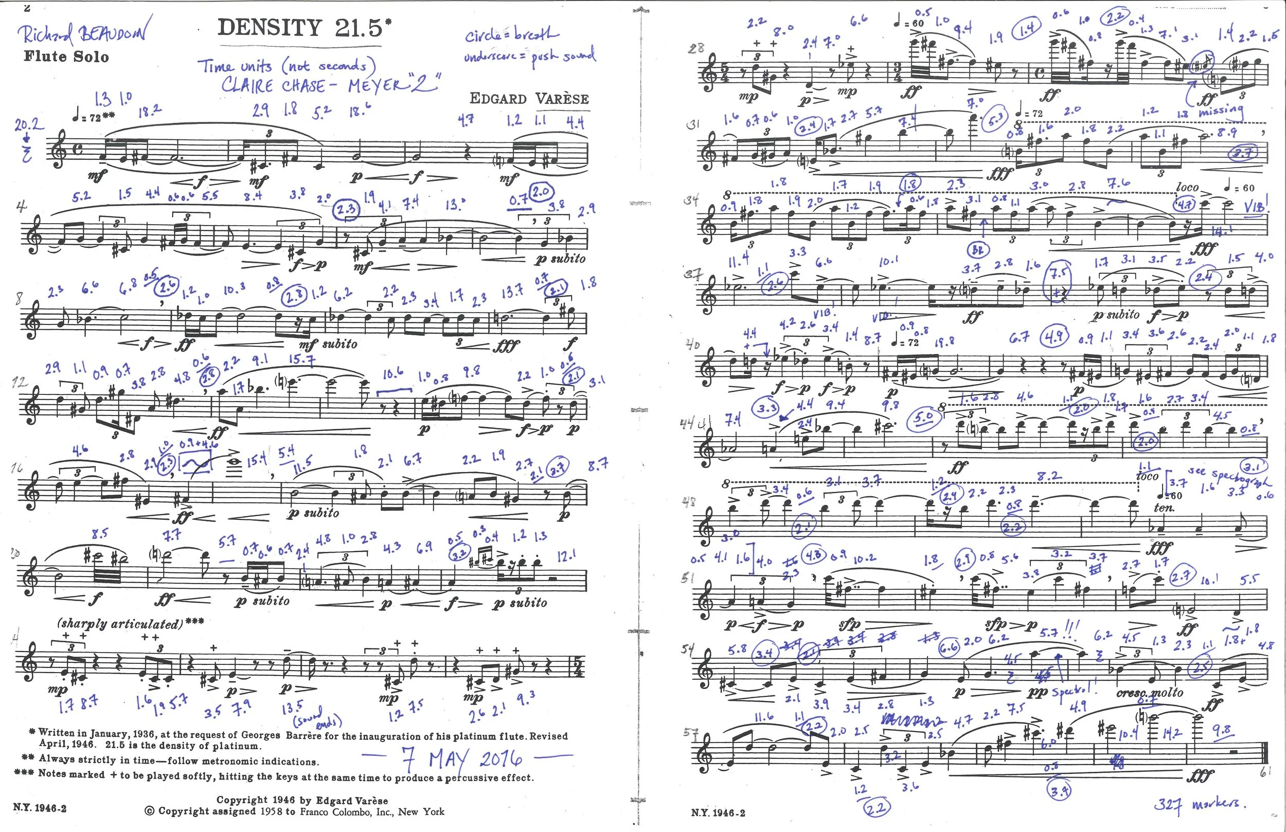 ABOUT DENSITY 2036 — In 2013, Claire Chase instigated a project designed to cultivate an entirely new body of work for flute. A MacArthur Fellow, Harvard professor, and indomitable musical force who co-founded the International Contemporary Ensemble, Chase began commissioning work, with the idea of doing so until the centennial of Edgard Varése's seminal flute solo "Density 21.5," in 2036. This deluxe 4-CD set is the first fruit of these commissions, realized in the first three years of the project, featuring 17 works by 15 composers, including the multi-part album-long composition "Pan" by Brazilian-born Marcos Balter. Composers wrote for all members of Chase's flute family, from piccolo to "Big Bertha" (her contrabass flute), as well as electronics, voice, and a handful of other instruments. Tyshawn Sorey performed percussion on his contribution and Suzanne Farrin played Ondes Martenot on hers; Roomful of Teeth collaborate with Chase on one piece, and sound designer Levy Lorenzo handles the electronics throughout. Participants come from a wide range of creative contemporary music circles; they include Richard Beaudoin, Nathan Davis, Jason Eckardt, Dai Fujikura, Vijay Iyer, Felipe Lara, Mario Diaz de Leon, George Lewis, Pauline Oliveros, Pauchi Sasaki, Francesca Verunelli, and Du Yun. The exquisitely detailed recordings of Density 2036 were made at the Meyer Sound Laboratories in Berkeley and produced by Matias Tarnopolsky over the course of four years, with no overdubbing or corrections, presenting Chase's incredible musicality in all its glory. This monumental program comes packaged as two double-CDs, sporting cover art by German artist Jorinde Voigt and liner note essays by Suzannah Clark, John Corbett, Jennifer Judge, and Steven Schick.